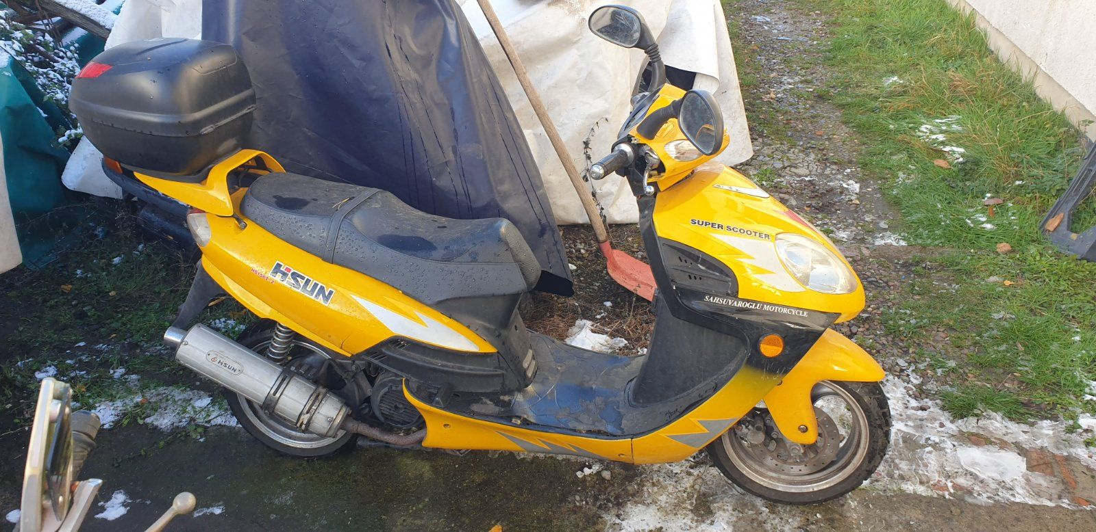 Hisun Roller Scooter HS150T-2 gelb zzgl GIVI Topcase